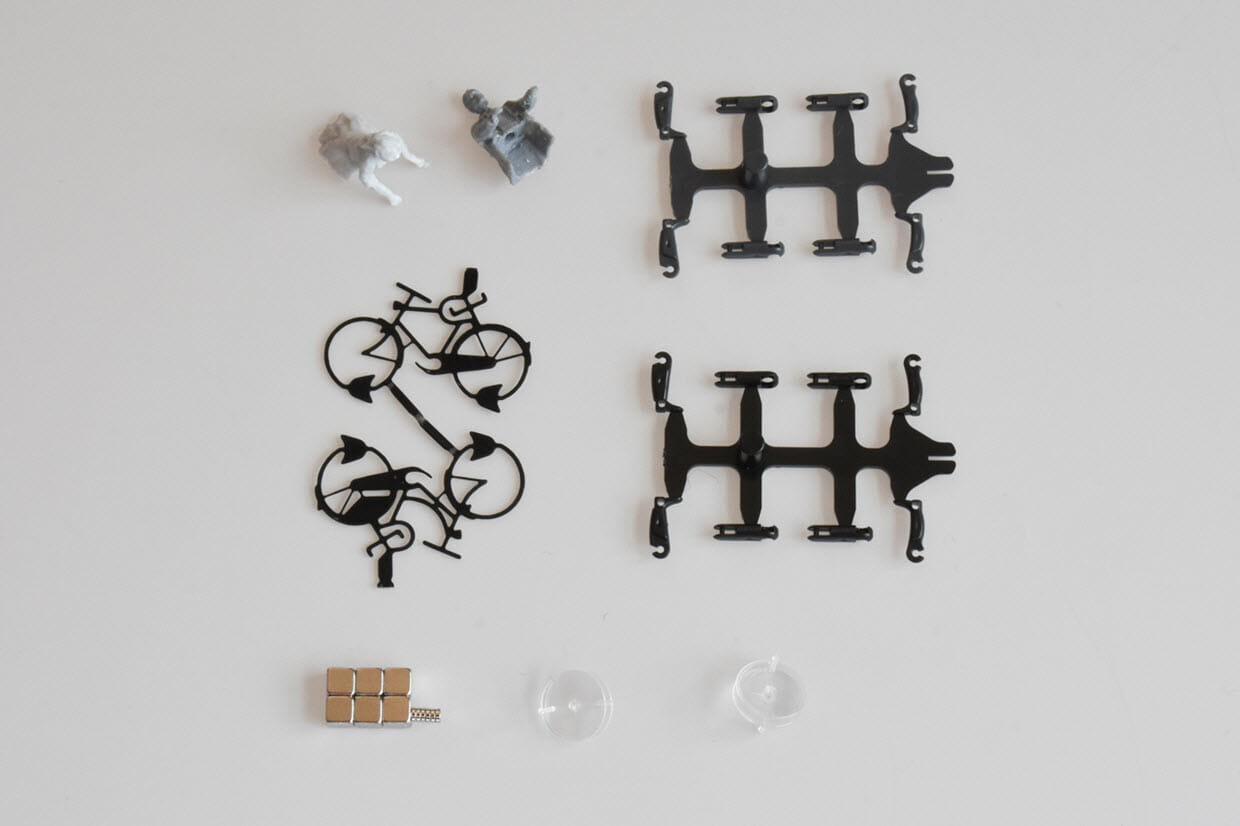 Met dit bouwpakket stelt u zelf uit losse onderdelen twee fietsers samen.