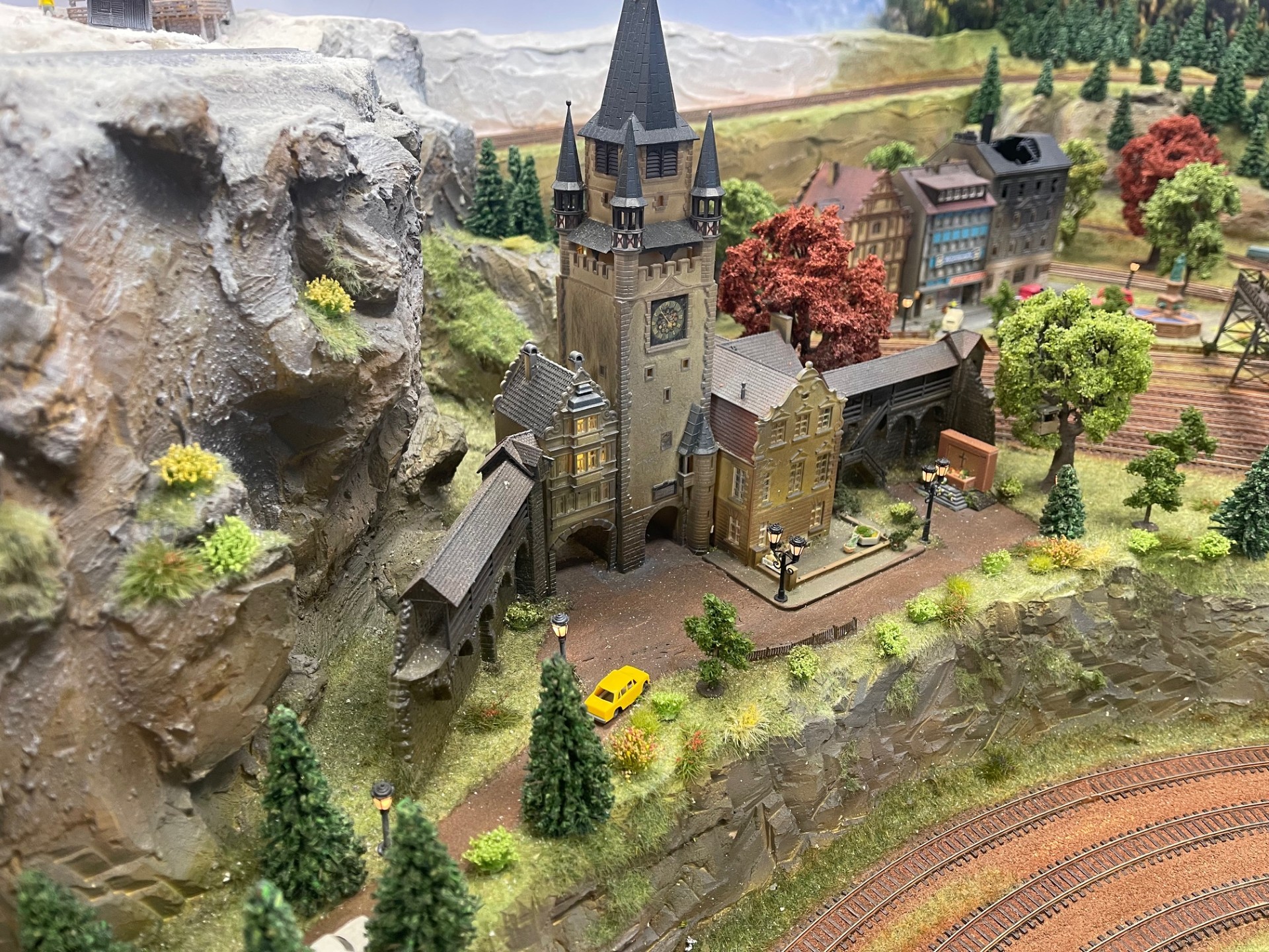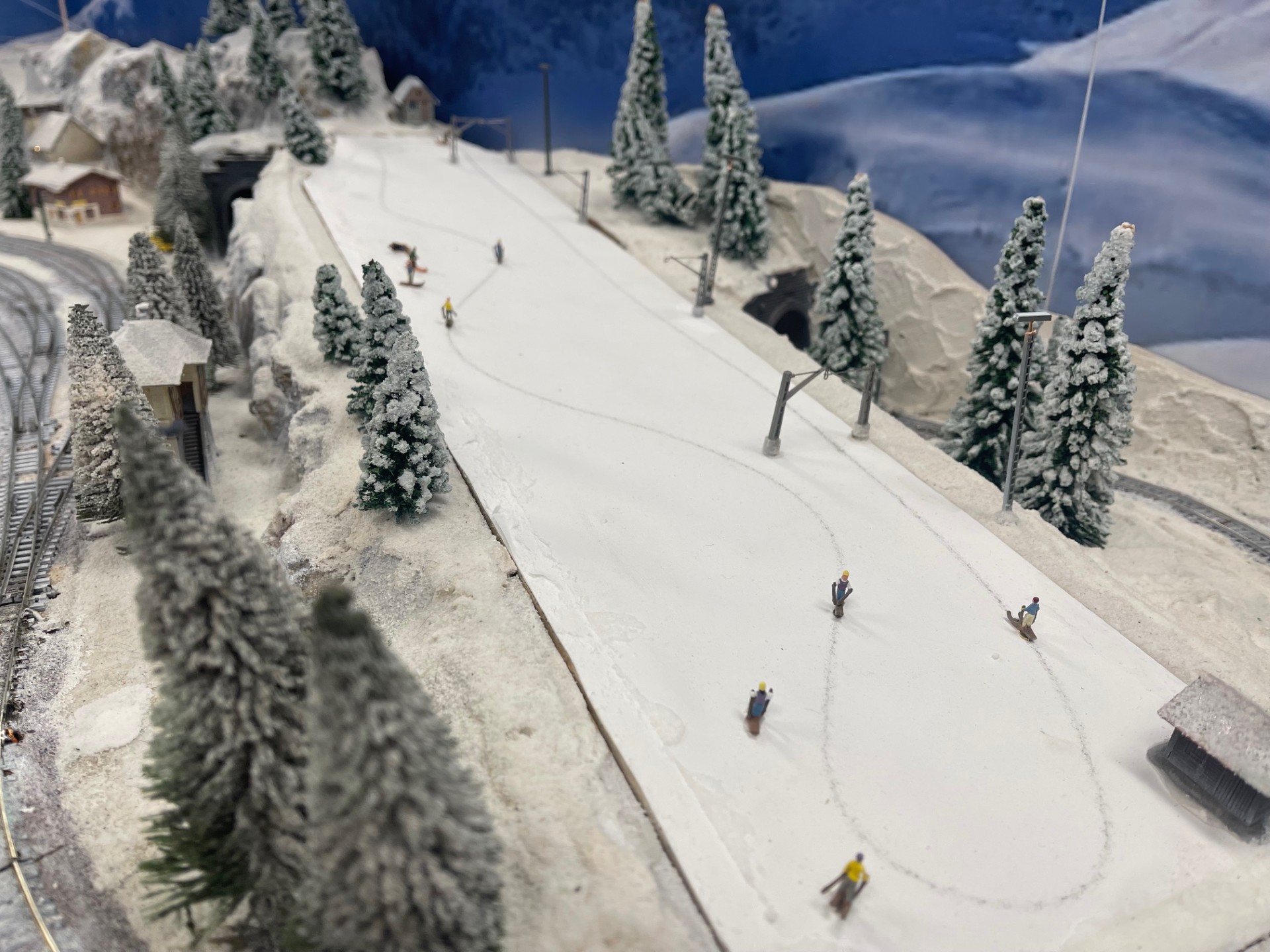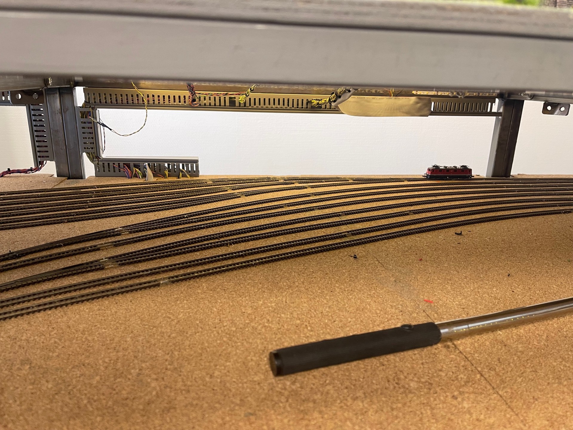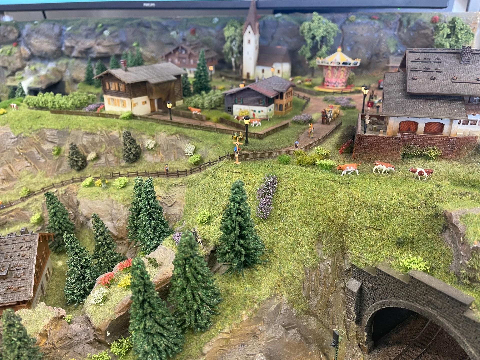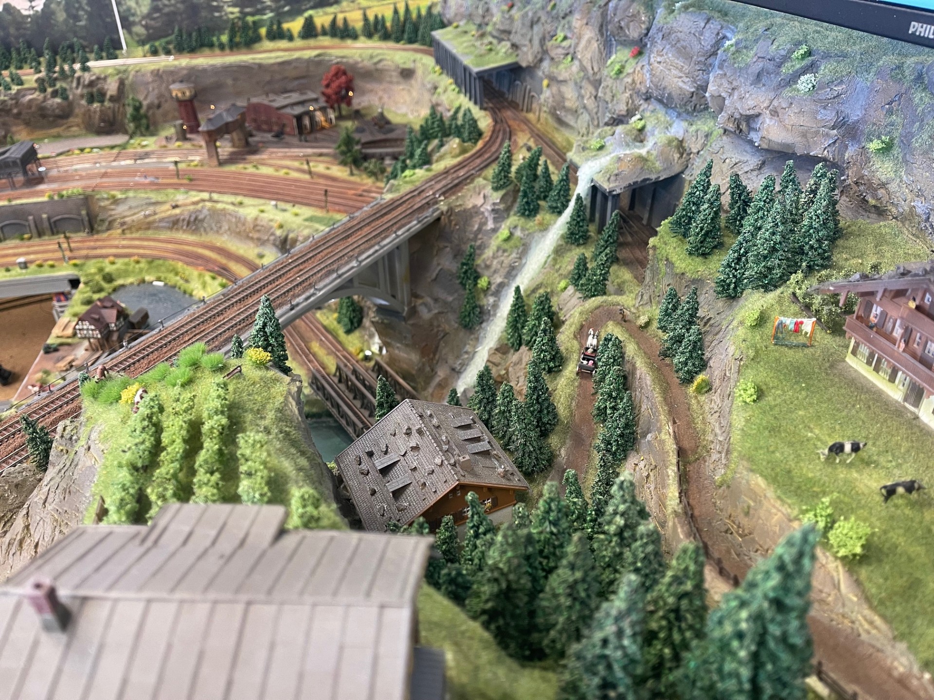 De modelbaan heeft een eigen computer en 2 grote 50 inch beeldschermen.